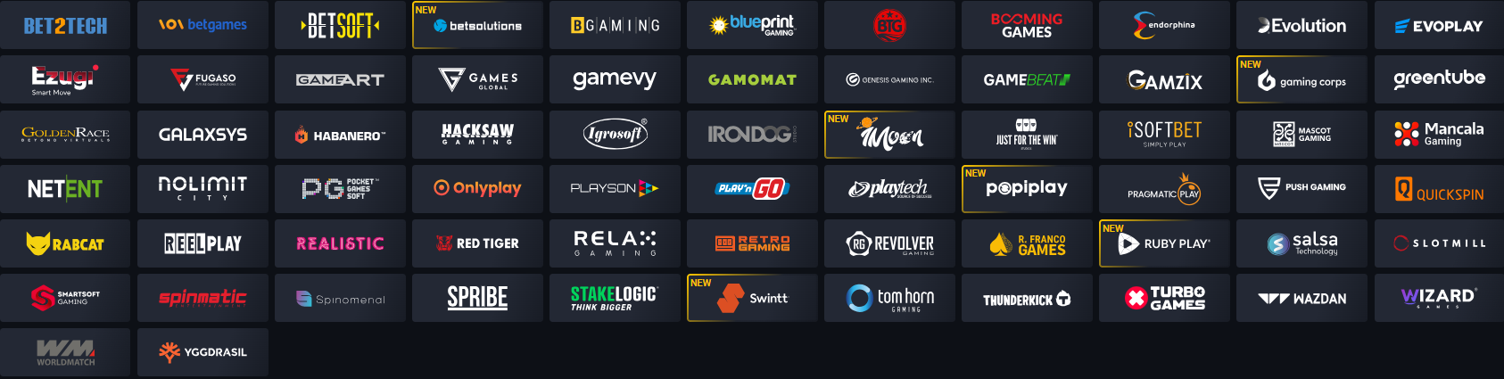 Среди новичков индустрии онлайн-гемблинга особого внимания заслуживают слоты брендов Yggdrasil Gaming, Evoplay, Belatra, Quickspin, NoLimit City, Iron Dog и других разработчиков, продукты которых представлены в ассортименте Пин Ап казино. В целом платформа предлагает слоты более чем 45 производителей.